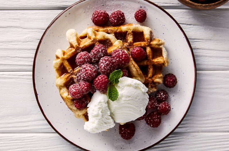 minutesHelt sprøde og søde belgiske vafler er simpelthen lækkert. Det er ekstra forkælelse en eftermiddag eller som aftensnack – og med søde hindbær og en kugle vaniljeis på toppen bliver det ikke bedre.