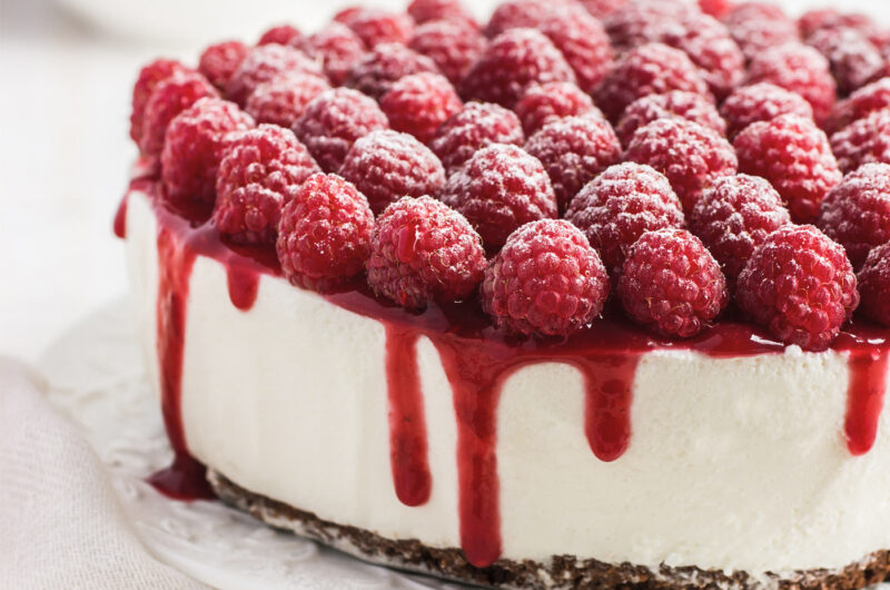 Cheesecake med kiksebund og hindbær
