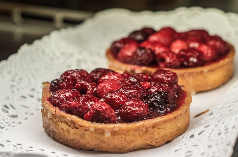 hoursLækre hindbærsnitter med hjemmelavet hindbærmarmelade, flot glasur og frysetørret hindbær på toppen.