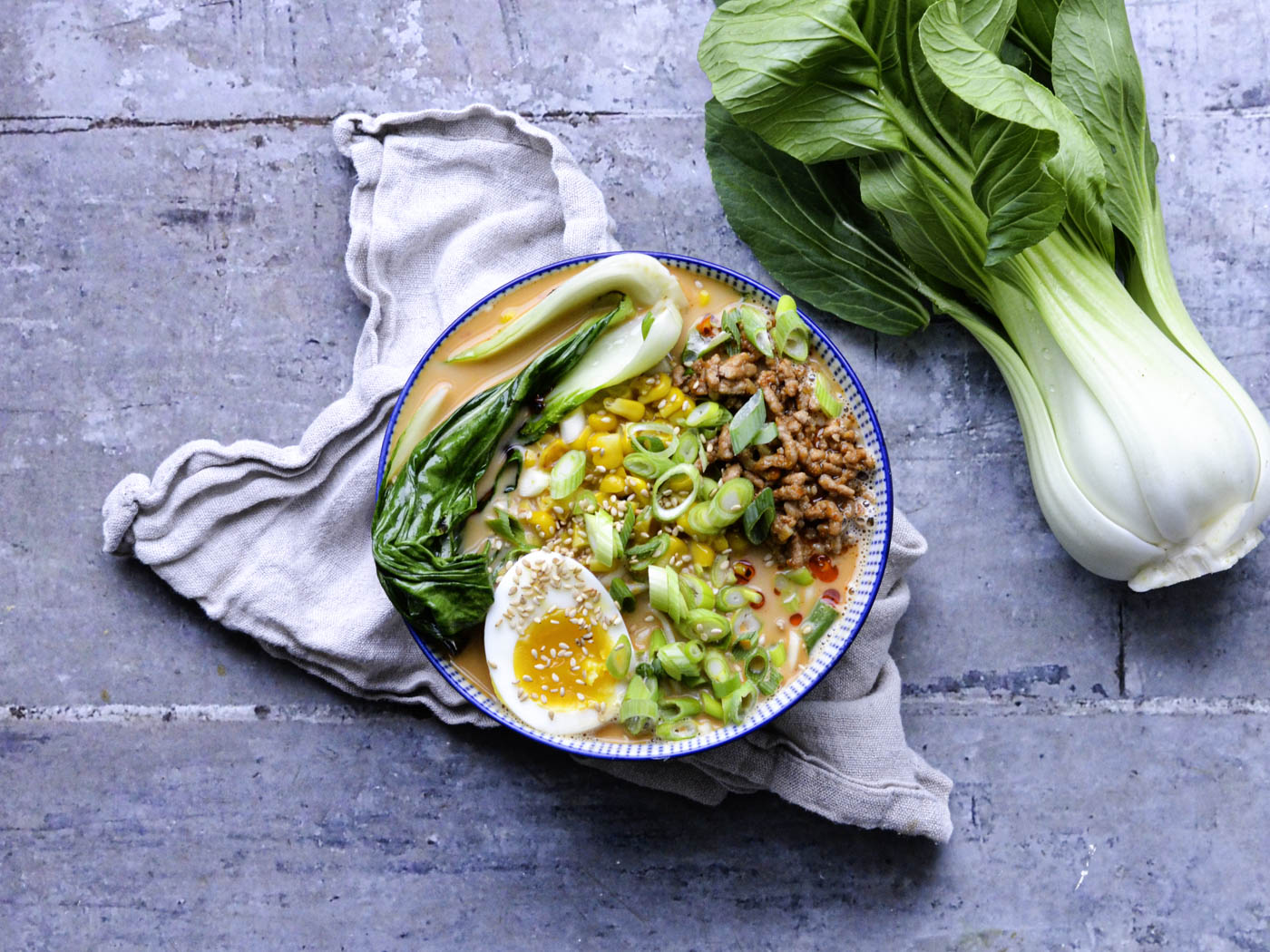 Tantan ramen er en varm, cremet nudelsuppe fyldt med skønne grøntsager i sæson. Denne version er lavet med gris, men dette kan nemt skiftes ud med tofu, hvilket giver en plantebaseret og ligeså smagfuld version.
